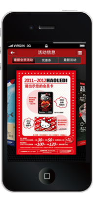 “乐游电子”内置多种优惠券模板,供企业选择,还 可自定义风格。顾客通过输入关键字,即可获得 相应活动优惠券。更可设置优惠券相关活动范畴、 钱包、使用权限。另兼容传统录入优惠码使用方 式,特创扫描二维码使用优惠券功能,大幅提高 使用效率。
